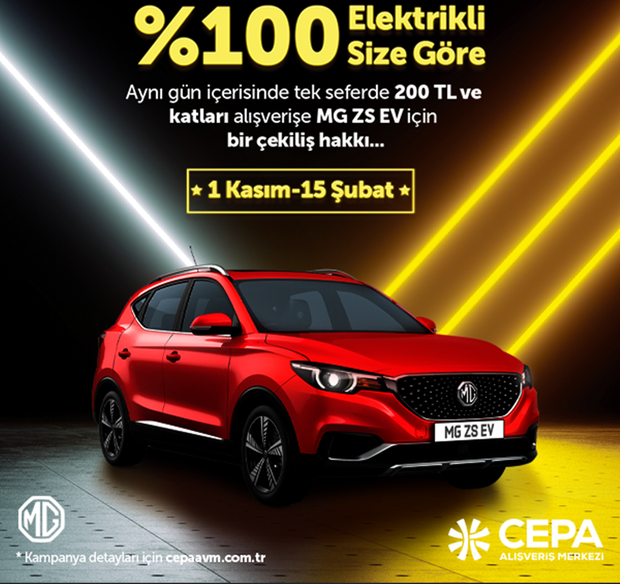 CEPA AVM MG ZS EV ELEKTRİKLİ ARABA ÇEKİLİŞİ CEPA AVM'DE 1-15 KASIM ARASINDA AYNI GÜN İÇERİSİNDE 200 TL VE ÜZERİ ALIŞVERİŞiNİZE BİR ÜCRETSİZ ARAÇ ÇEKİLİŞ HAKKI... İNCELE