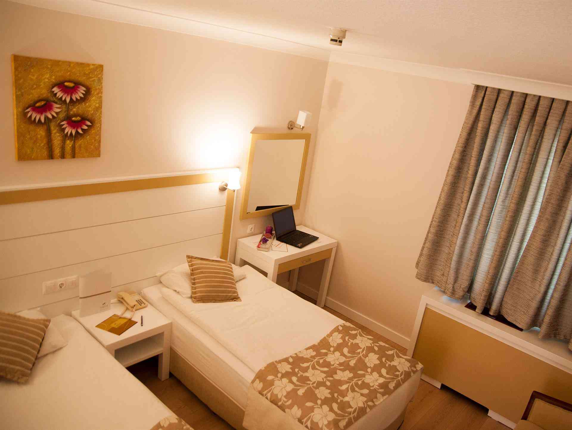 Odalarda standart olarak, halı döşeli zeminler ve saç kurutma makinesiyle donatılmış özel bir banyo bulunmaktadır. Ayrıca minibar ve oturma alanı da mevcuttur.