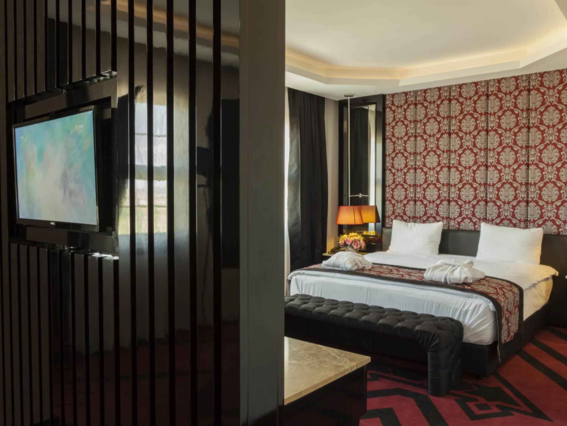 Banyo Çalışma Masası Çarşaf Değişimi Duş LED Televizyon Mini Bar Oda Kasası Oda Servisi Odada Direkt Telefon Saç Kurutma Makinesi Split Klima Uydu Yayını Wireless İnternet