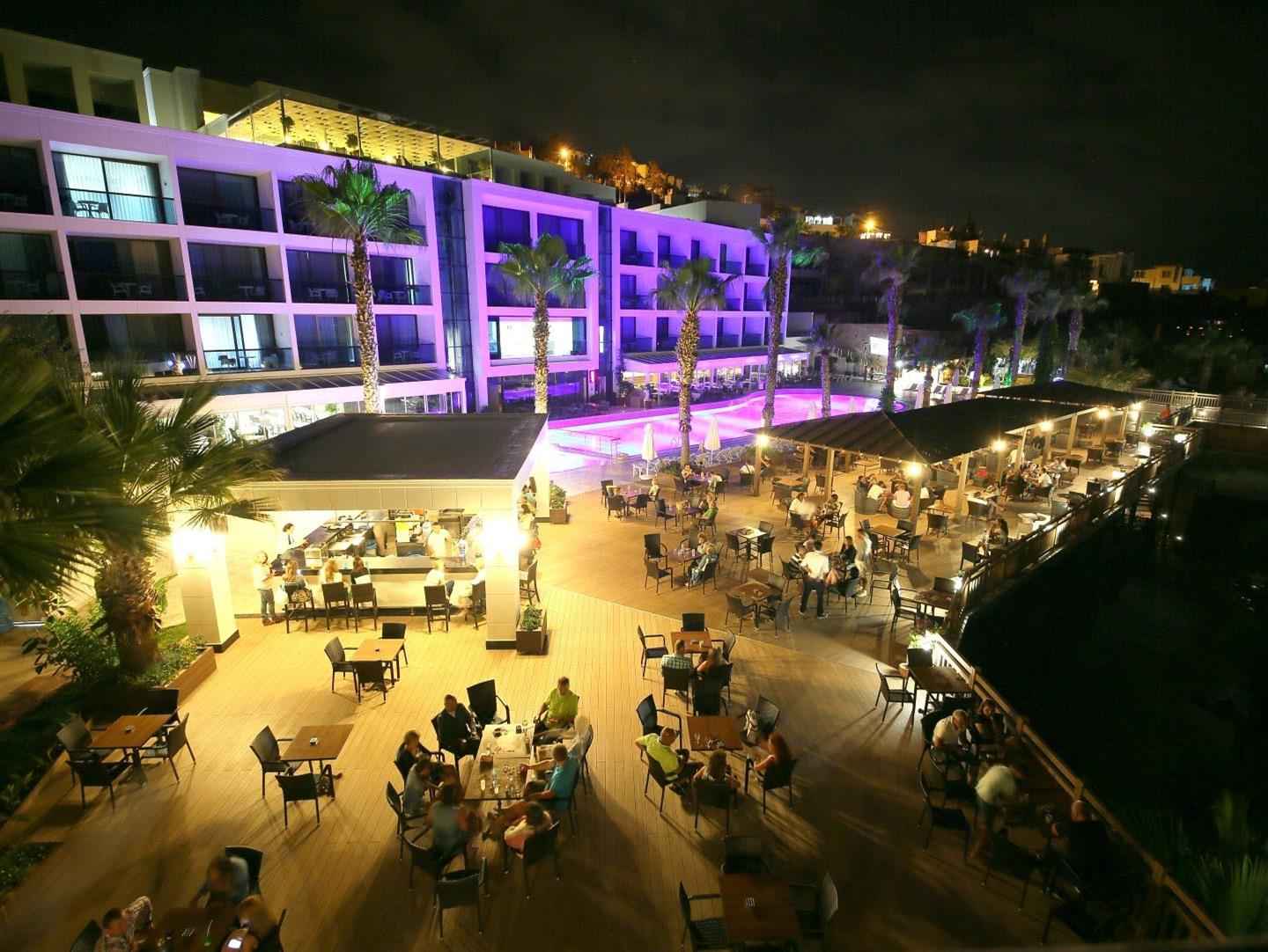 Sabah, öğle ve akşam açık büfe yemekler ücretsiz. Tesis'in belirlediği konsept dahilindeki bazı yerli alkollü ve alkolsüz içecekler ücretsiz sunulmaktadır. Belirtilen hizmetler dışındaki tüm ekstra hizmetler ücretlidir.