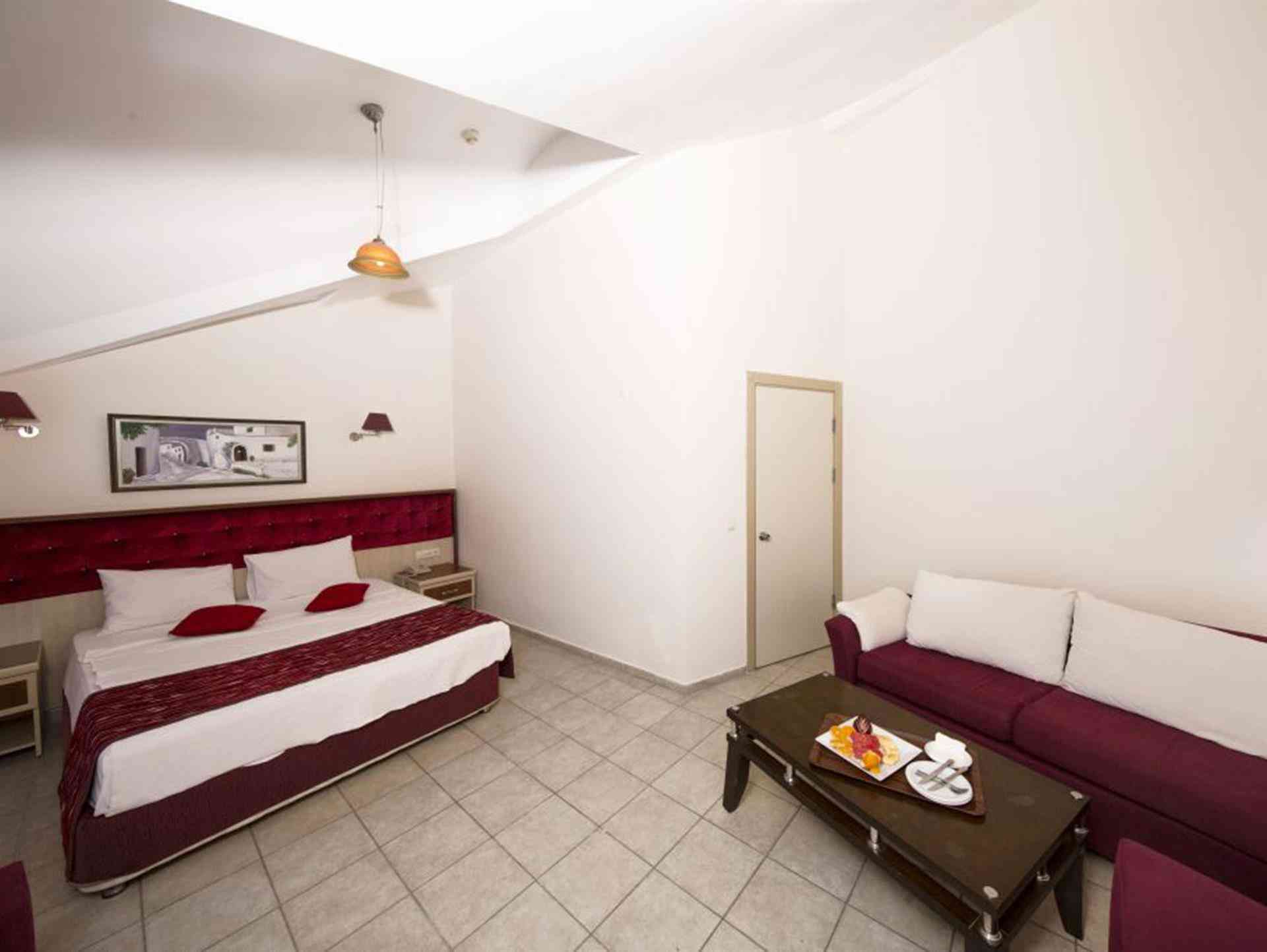 Arada kapısı olan iki ayrı odadan oluşur. 1. odada iki kişilik bir büyük yatak, 2. Odada tek kişilik iki ayrı yatak bulunur. Sıcak- soğuk split klima, uydu tv yayını, telefon, minibar, dijital kasa, su ısıtıcı ve çay-kahve seti banyolarda küvet ve duşakabin.