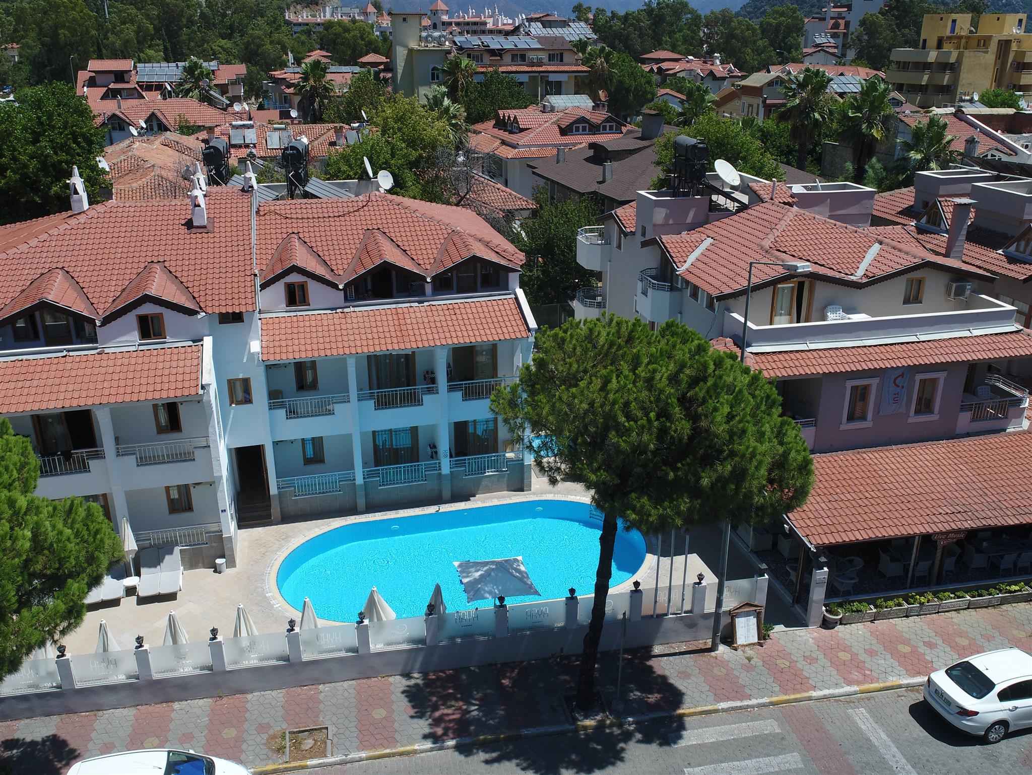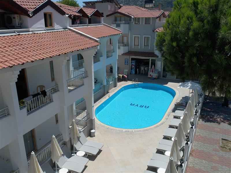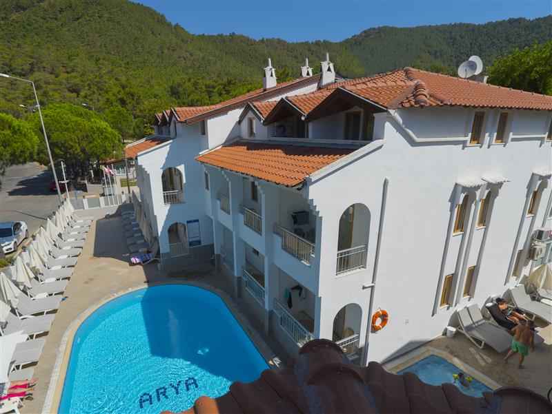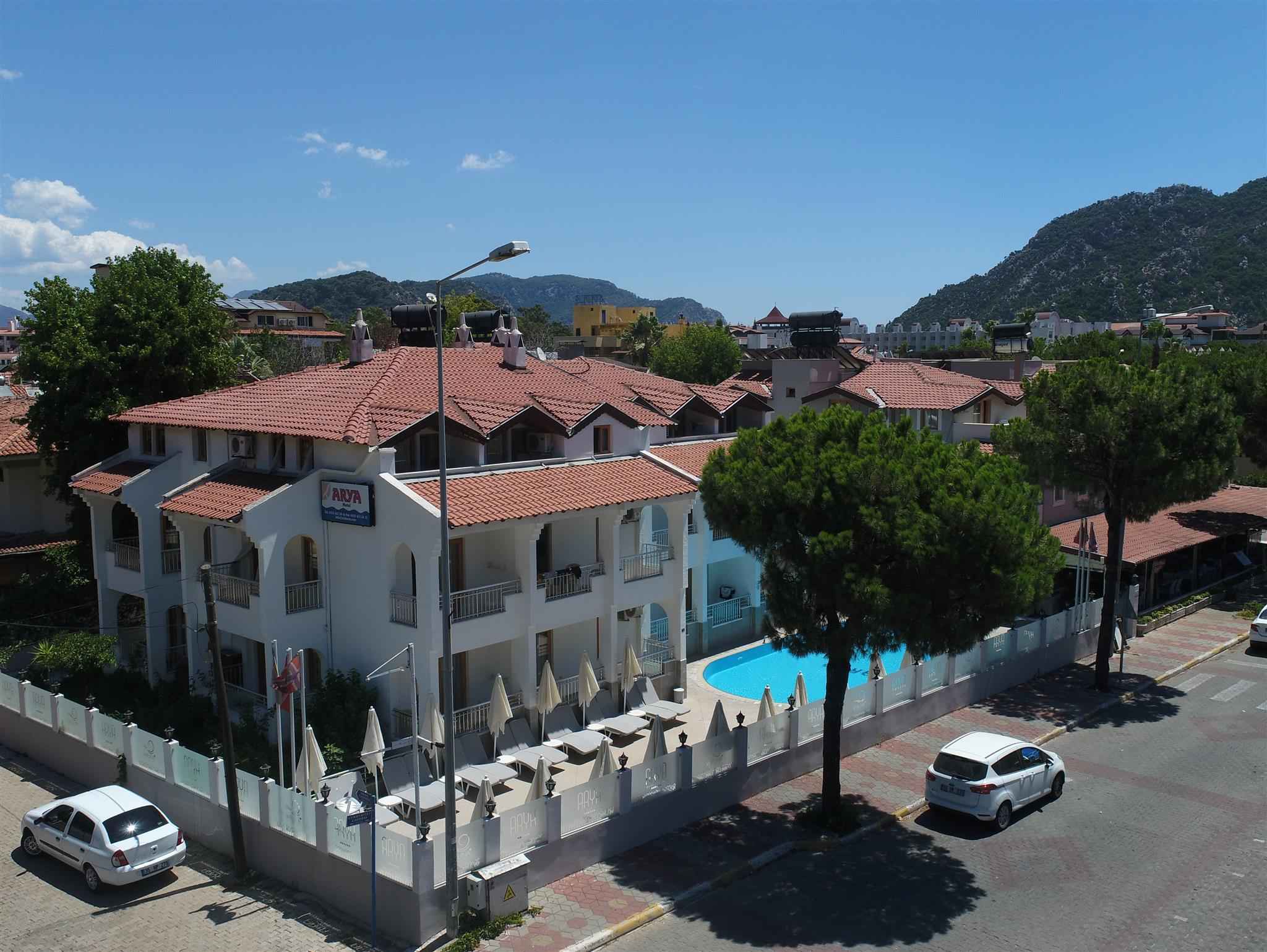 Arya Hotel, doğal güzellikleri ile görenleri kendine hayran bırakan Marmarisin İçmeler mevkiinde yer alıyor. Tesis misafirlerini konforlu odalarda ağırlıyor. Tesisin 32 odası bulunuyor. Odalarda; klima, gardırop, LCD TV ve uydu yayını bulunuyor. Ayrıca tesiste kablosuz internette mevcut. 24 saat açık resepsiyon, konforlu şezlonglar ve şemsiyelerin çevrelediği açık yüzme havuzu, misafirlerine suyun ve güneşin keyfini doyasıya çıkarma olanağı veriyor.