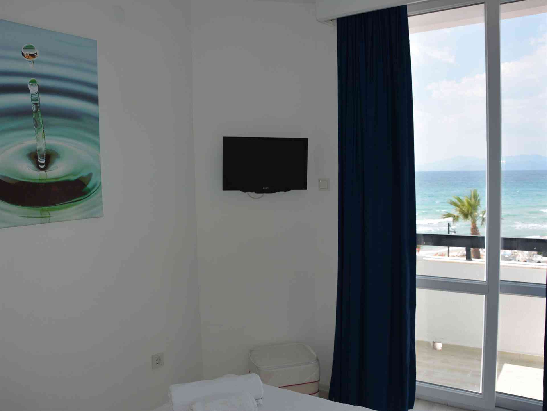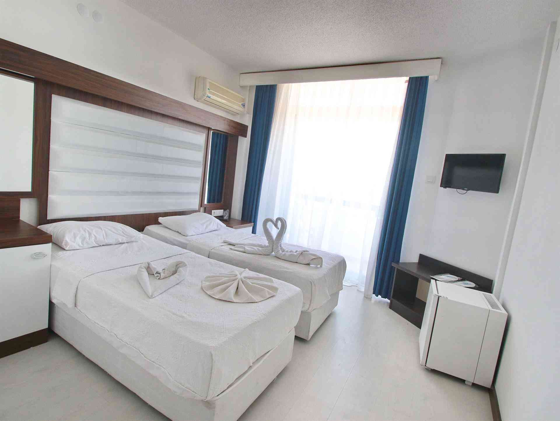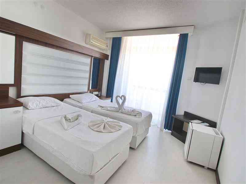 Tümü sıcak tonlarda dekore edilmiş huzurlu bir ortama sahip odalar klimalıdır. Odalarda özel balkon ve TV vardır. Bazı odalar denizin güzel manzarasına sahiptir. Konuklar oda servisinden yararlanabilirler.
