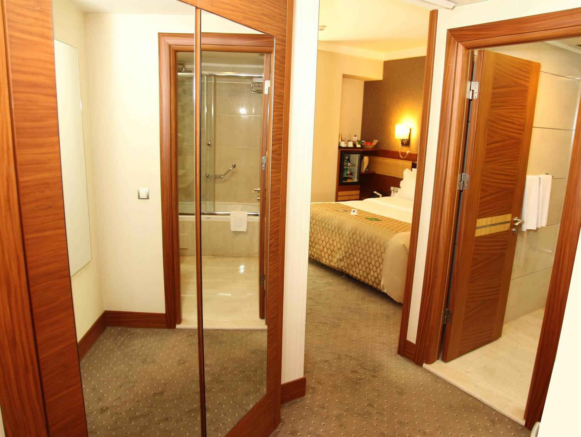 Banyo Dolap Duş Duşakabin Halı Zemin Kahve & Çay Kasa Kettle Küvet LCD Televizyon Merkezi Klima Mini Bar Oda Servisi Oda Temizliği Odada Direkt Telefon Oturma Grubu Saç Kurutma Makinesi Uyandırma Servisi Uydu Yayını WC Wireless İnternet Yastık Menüsü