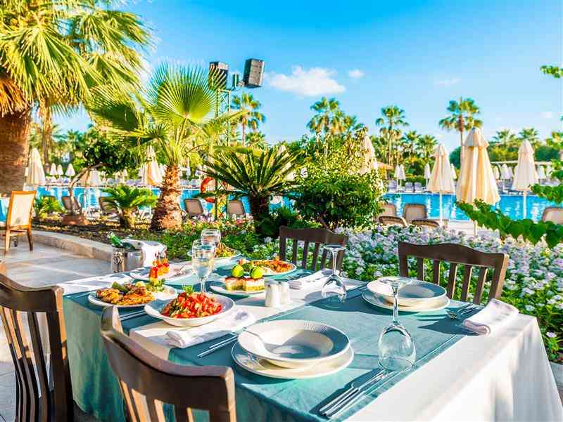 Sabah, Öğle ve akşam açık büfe yemekler ücretsiz. Tesis'in belirlediği konsept dahilinde ki bazı yerli ve yabancı alkollü ve alkolsüz içecekler ücretsiz sunulmaktadır. Belirtilen hizmetler dışındaki tüm hizmetler ekstra ücretlidir.