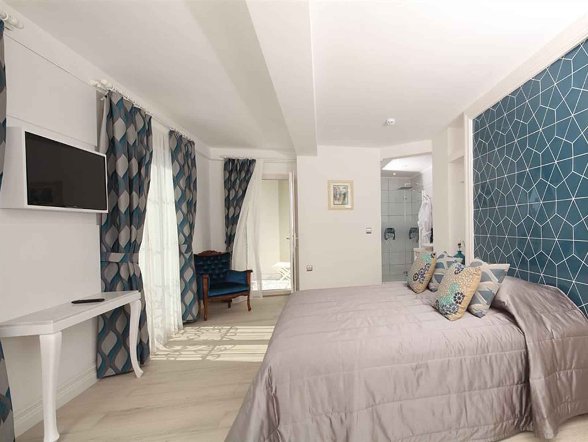 Balkon Banyo Bornoz, Banyo Gereçleri Çarşaf Değişimi Dolap Duş Duşakabin Kettle Klima LCD Televizyon Mini Bar Saç Kurutma Makinesi Telefon Uydu Yayını Wireless İnternet