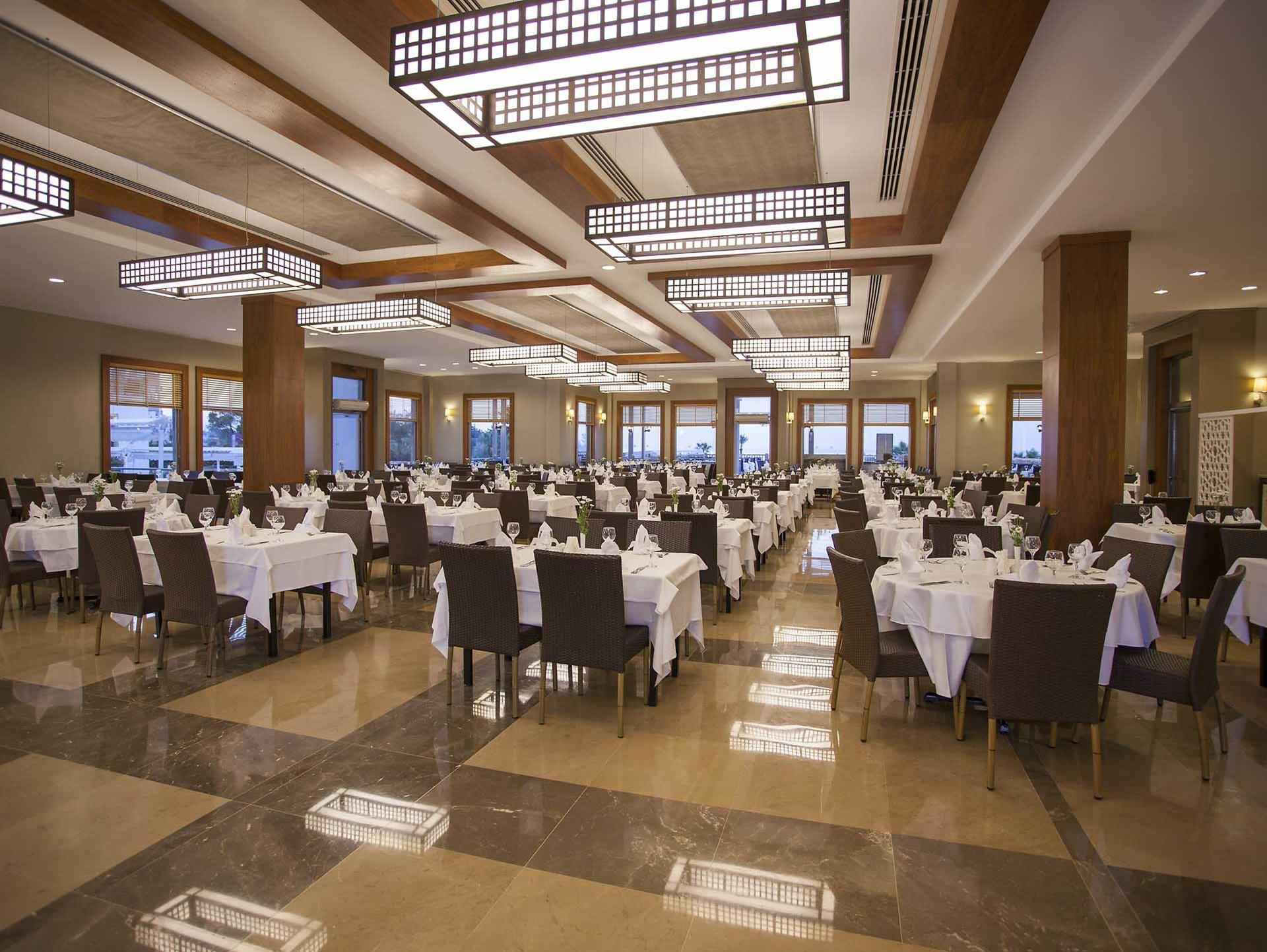 Sabah, Öğle ve akşam açık büfe yemekler ücretsiz. Tesis'in belirlediği konsept dahilinde ki bazı yerli ve yabancı alkollü ve alkolsüz içecekler ücretsiz sunulmaktadır. Belirtilen hizmetler dışındaki tüm ekstra hizmetler ücretlidir.
