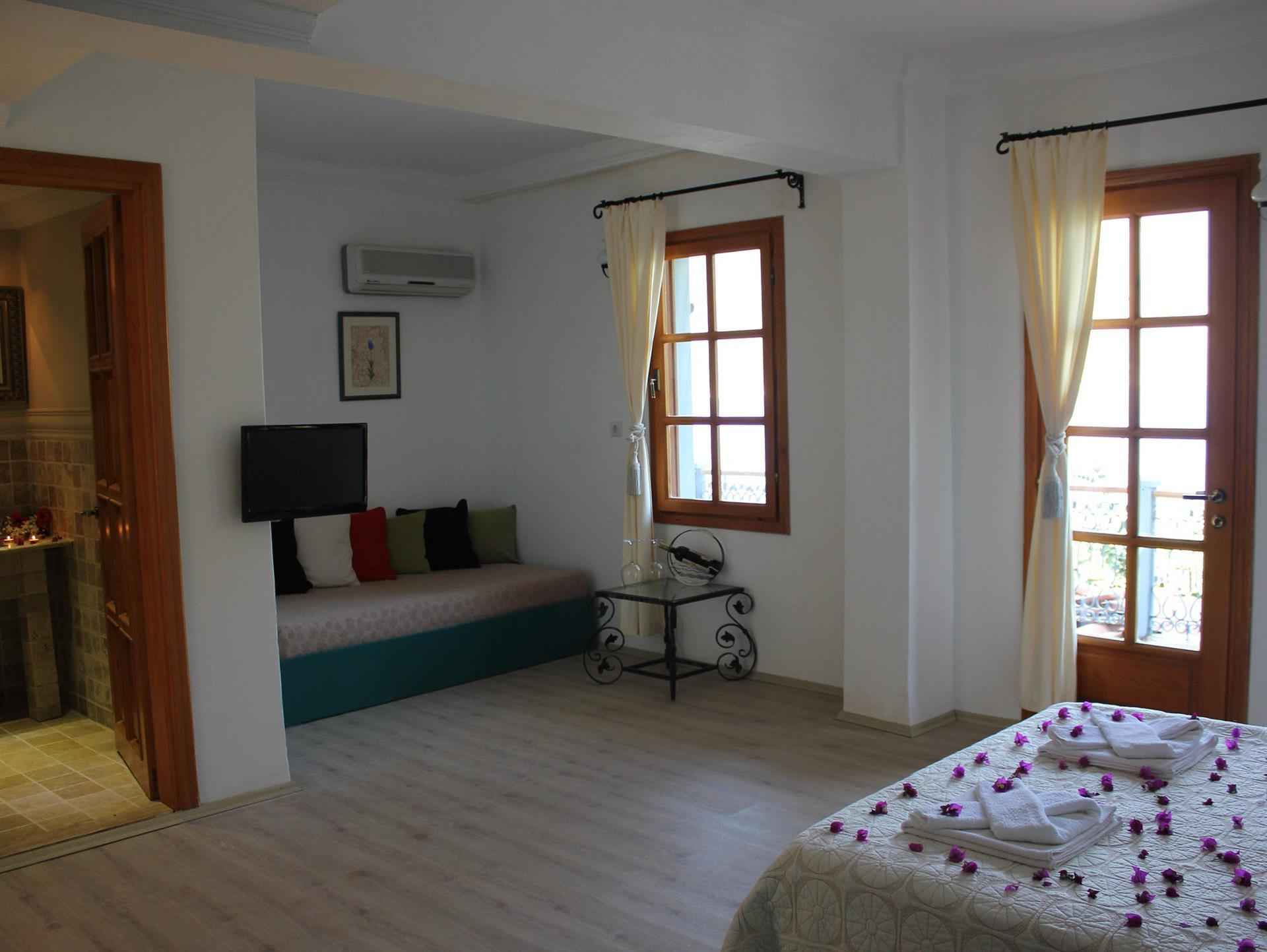 Balkon Banyo Çalışma Masası Dolap Duş LED Televizyon Oda Temizliği Odada Direkt Telefon Saç Kurutma Makinesi Sofa Bed Split Klima Uydu Yayını WC Wireless İnternet